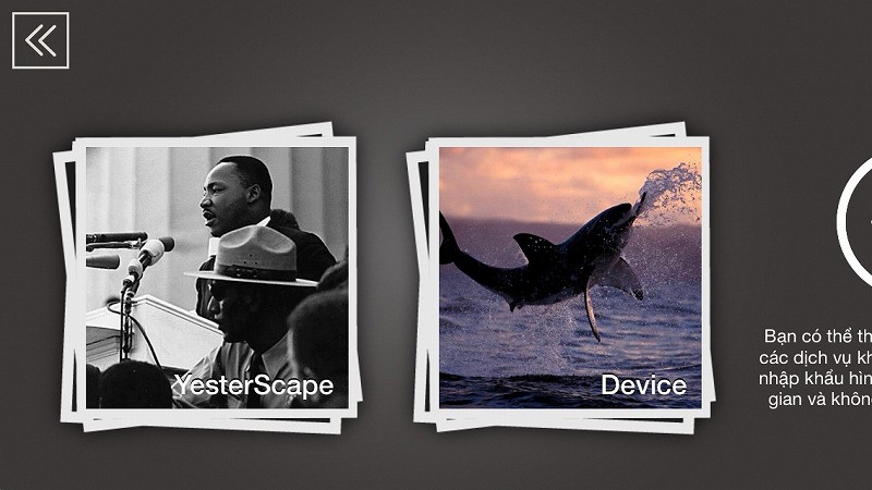 Bộ sưu tập cho phép bạn xem tất cả các hình ảnh mà bạn có. Hình ảnh là thiết bị độc lập do đó họ sẽ được đồng bộ hóa với tất cả các thiết bị của bạn. Nếu bạn có bất kỳ hình ảnh trong điện thoại, Facebook, Flickr hoặc Picasa tài khoản mà bạn muốn thấy trong Yesterscape, bạn có thể thêm chúng ở đây.