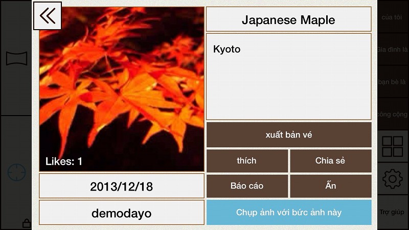 Khi bạn chọn bức ảnh, bạn có thể xem chi tiết của bức ảnh. Bằng cách nhấn "Ẩn", hình ảnh sẽ không còn xuất hiện trên màn hình chính. (Khởi động lại ứng dụng để thiết lập lại sự thay đổi)