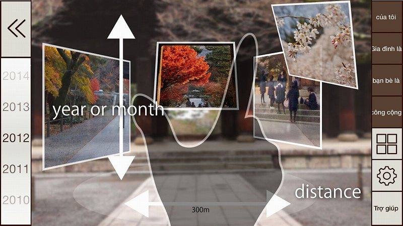 Thay đổi phạm vi cho phép bạn duyệt qua thời gian và không gian. Swiping theo chiều dọc thay đổi giữa các tháng, năm và thập kỷ. Swiping ngang điều chỉnh như thế nào đến nay bạn có thể nhìn thấy.