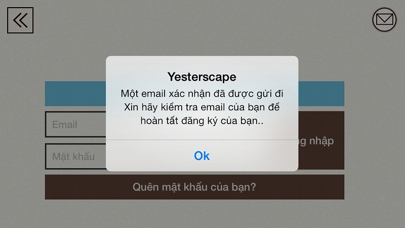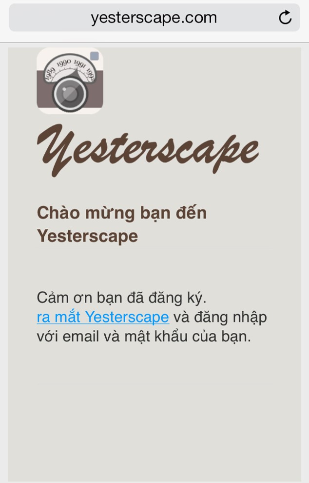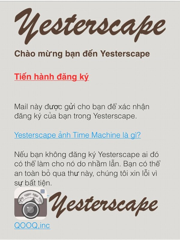 Vui lòng kiểm tra hộp thư của bạn cho email có tiêu đề, "YesterScape." Nếu bạn muốn đăng ký, xin vui lòng bấm vào nút "Tiến hành đăng ký"(Trong chữ màu đỏ)